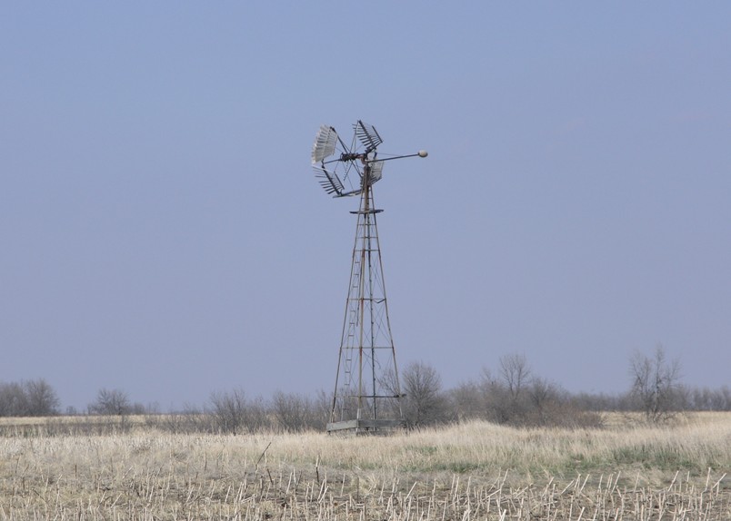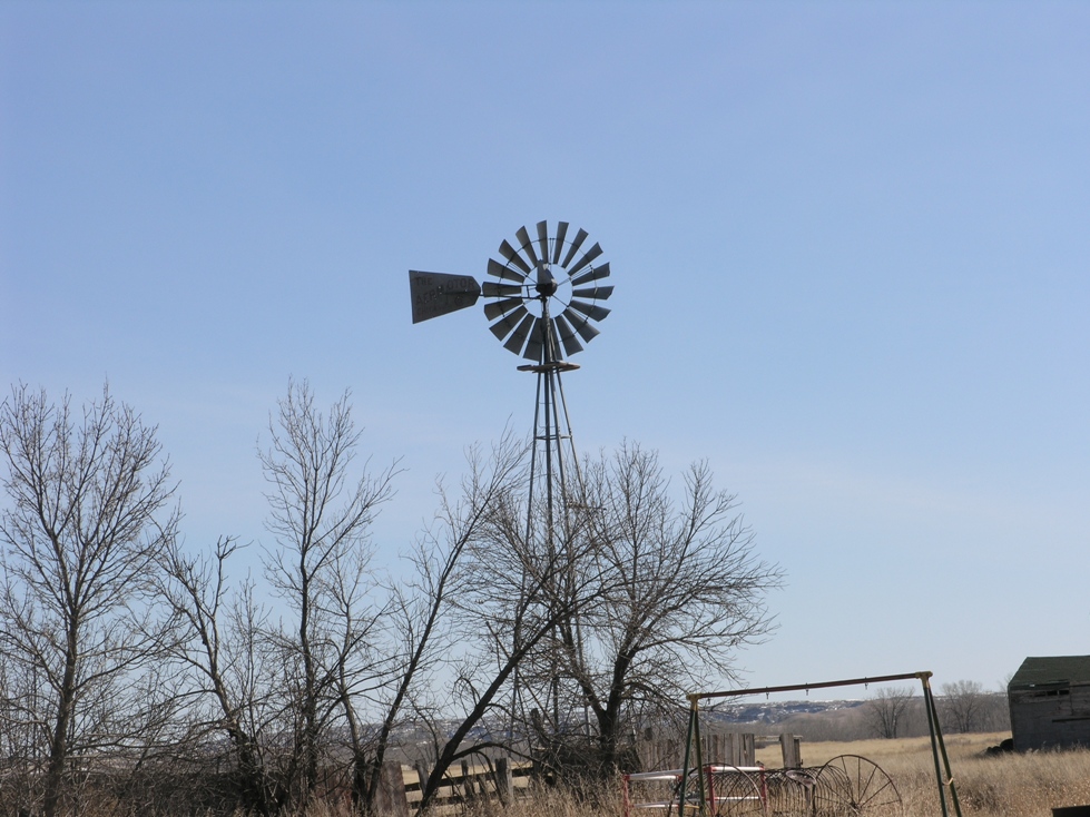 Windmill at Joe & Inga Camrud farmstead east of Wolf Point, Montana.