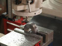 The average O.D. of the pipe is 7.991" If I use eight rods to make the cage, that will leave 3" wide slots. The exact spacing was 3.058" O/C. A caliper was used to etch those dimensions near the end of the pipe. I then marked the scratch lines with a permanent marker, slid one of the bands on, tightened it, and marked those lines on the band also. Using the seam where the tubing was joined as a reference, I slid the band up so the rods would extend past the end of the pipe about an inch, turned the band to align it in the same place relative to the seam and tightened it.